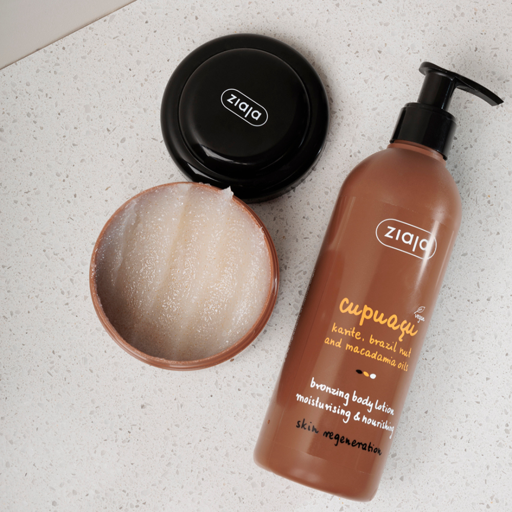 Cupuacu - Loțiune de corp autobronzantă, 300 ml. Are un parfum plăcut și oferă efectul de bronzare subtilă, întărește bariera de protecție a pielii, hrănește, regenerează și îmbunătățește elasticitatea. Este ușor de aplicat și conține 96% ingrediente de origine naturală.