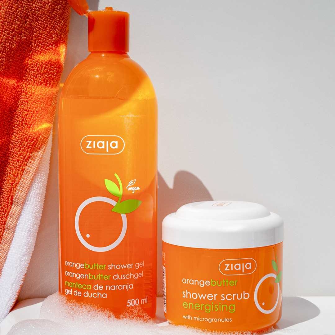 Orange Butter - Gel de duș, 500 ml. Curăță, protejează și catifelează pielea. Conține unt de portocală (calmează iritațiile, hrănește epiderma și protejează pielea împotriva deshidratării), provitamina B5 (D-pantenol - ajută la menținerea umidității pielii și previne uscarea), coco-glucozide (agenți de curățare blânzi, derivati din nucă de cocos și zahăr, care curăță pielea fără a o usca sau irita).